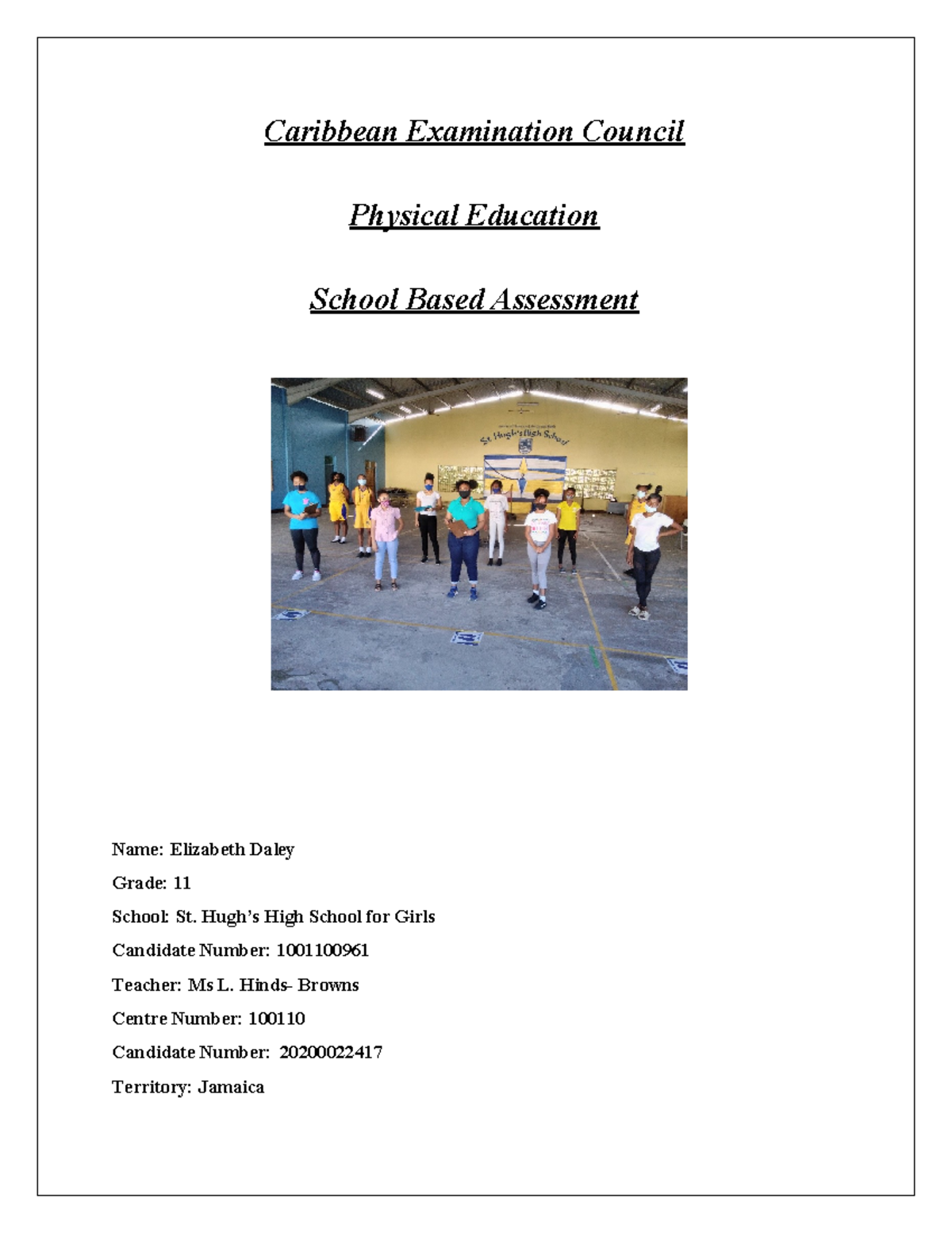 Physical Education SBA - Physical Education School Based Assessment