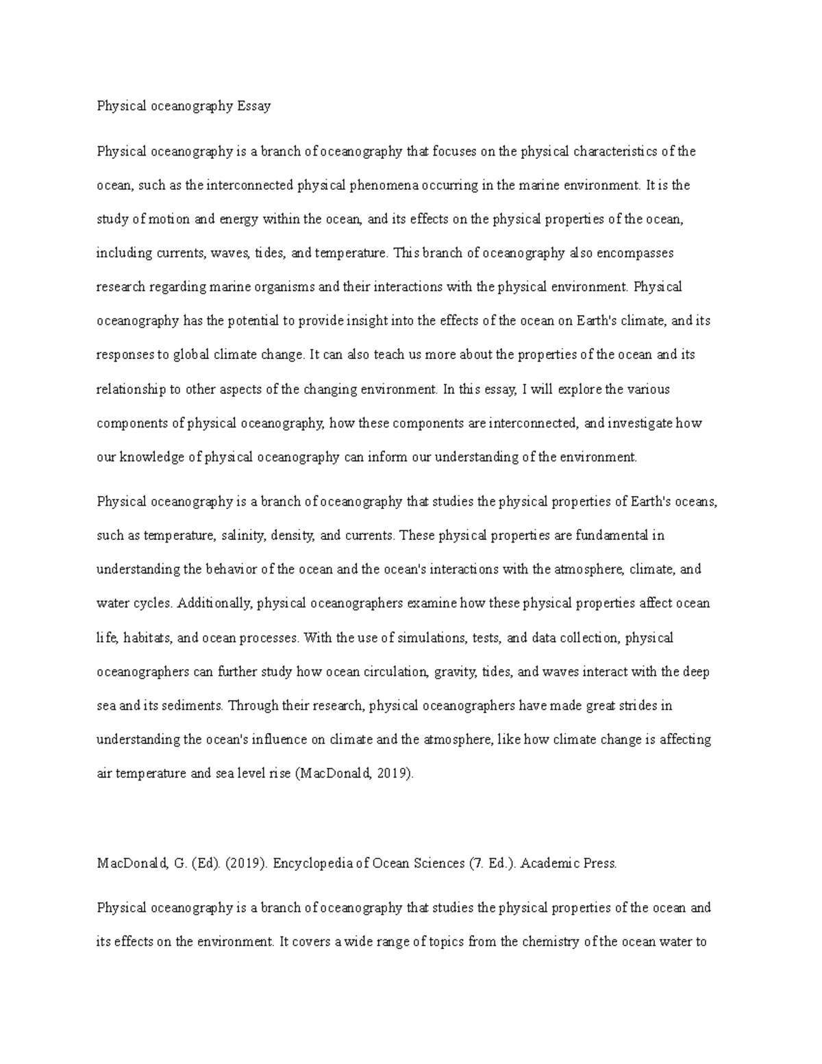 Physical oceanography Essay - Physical oceanography Essay Physical