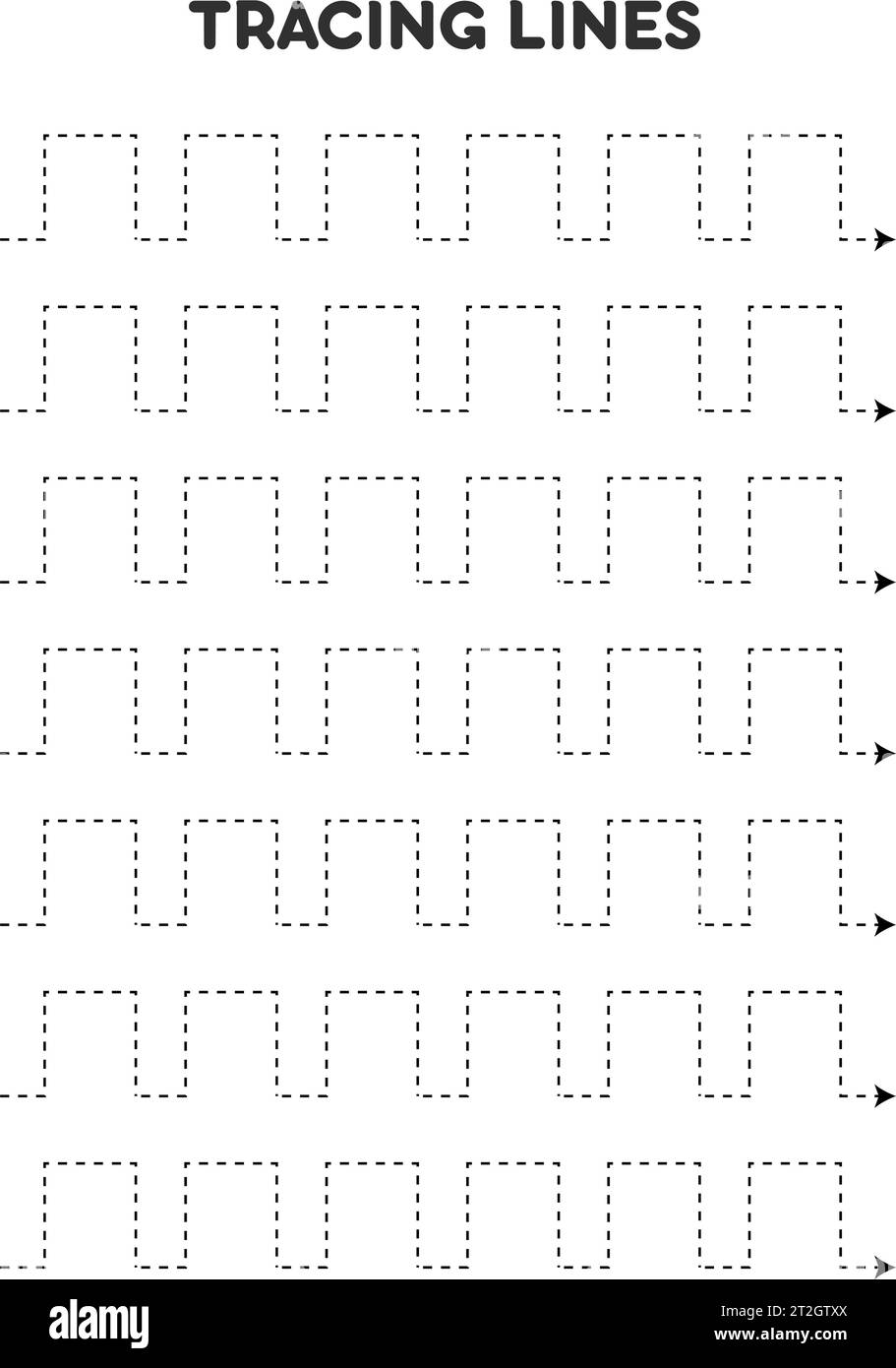 Tracing lines. Worksheets for kids. Preschool education Stock Vector