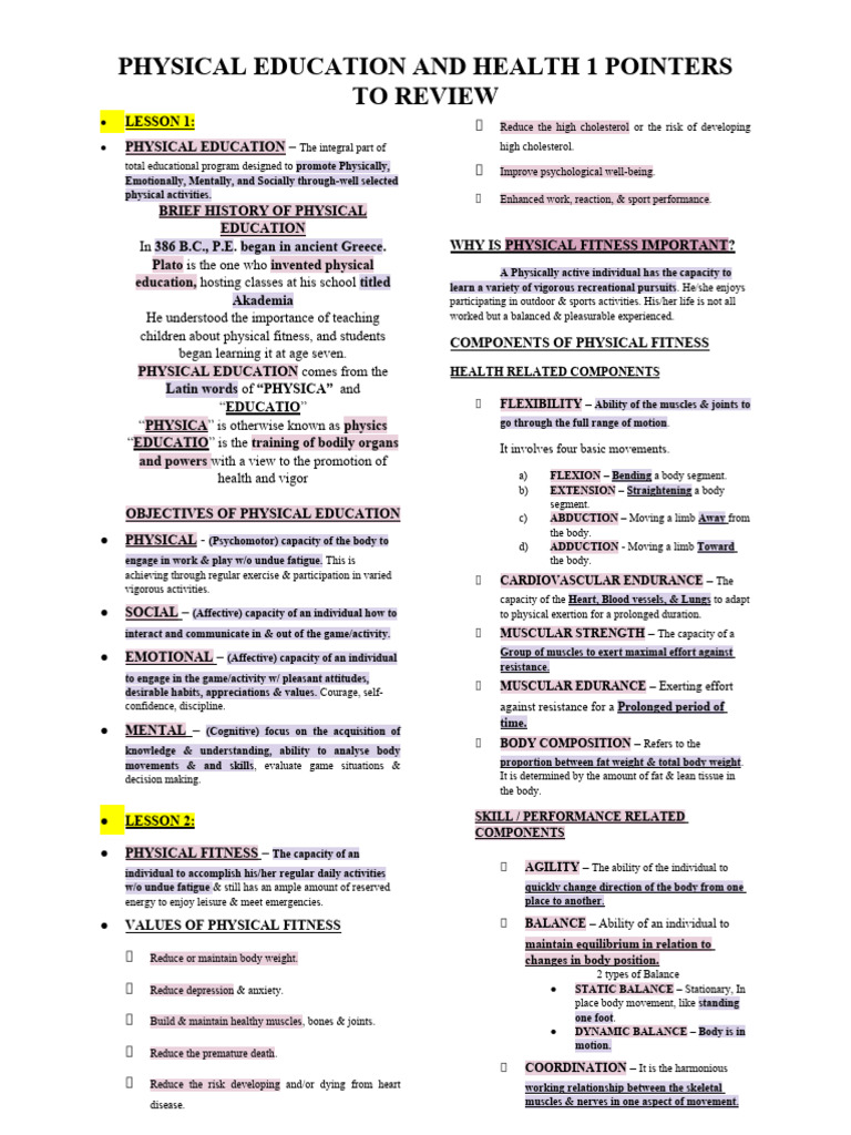 (pe) Reviewer pointers - PHYSICAL EDUCATION AND HEALTH POINTERS TO
