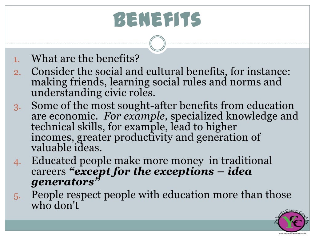 The Benefits of Pursuing Education - 492 Words | Essay Example
