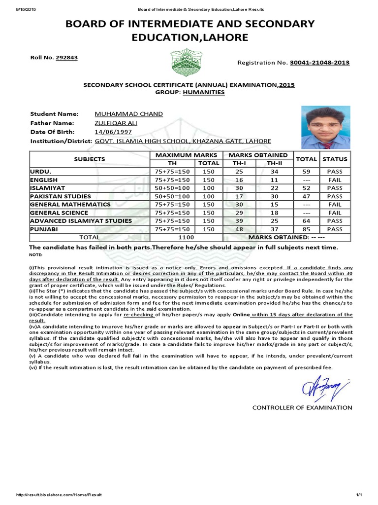 Lahore Board Result 2024 10th Class Link - Dasi Missie