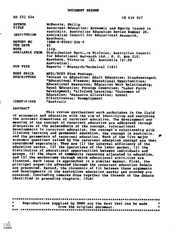 (PDF) Recurrent Education: Economic and Equity Issues in Australia