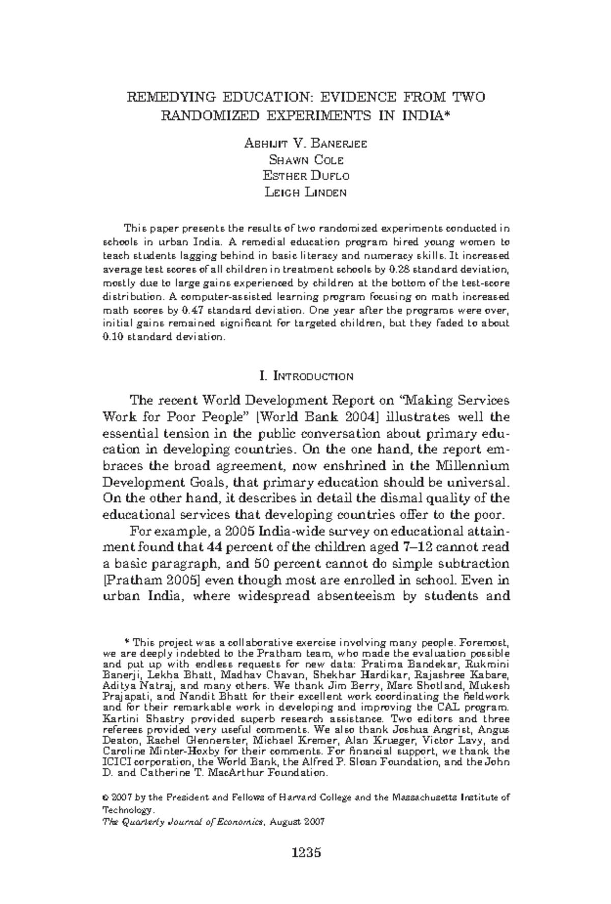 Remedying Education Evidence FROM TWO - REMEDYING EDUCATION: EVIDENCE