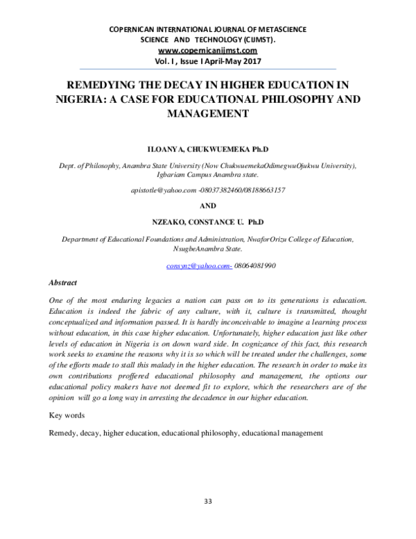 (PDF) REMEDYING THE DECAY IN HIGHER EDUCATION IN NIGERIA: A CASE FOR
