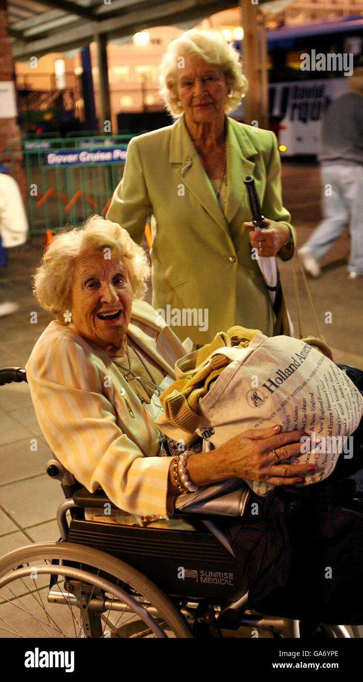 Passengers Betty Bennett (seated) and Ruth Bradbury leave the Black