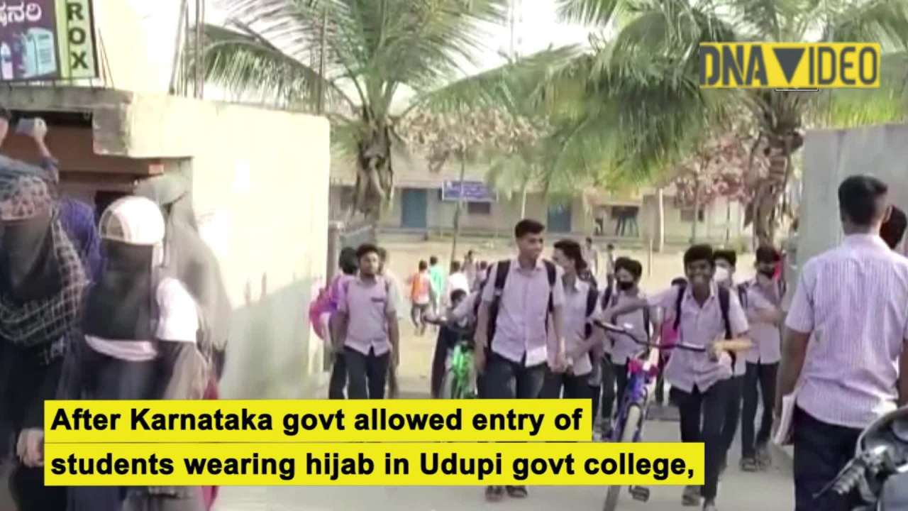 Karnataka: Students wearing saffron stole arrive in Shanteshwar