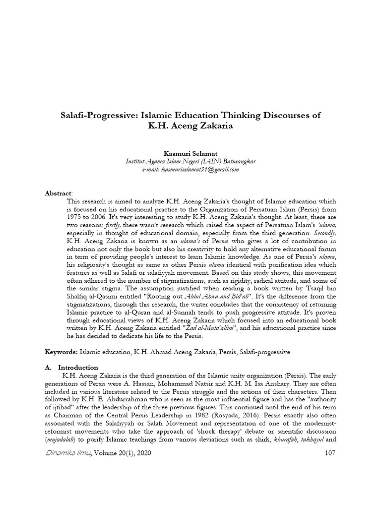 (PDF) Existence of Salafi Education Institutions in West Nusa Tenggara