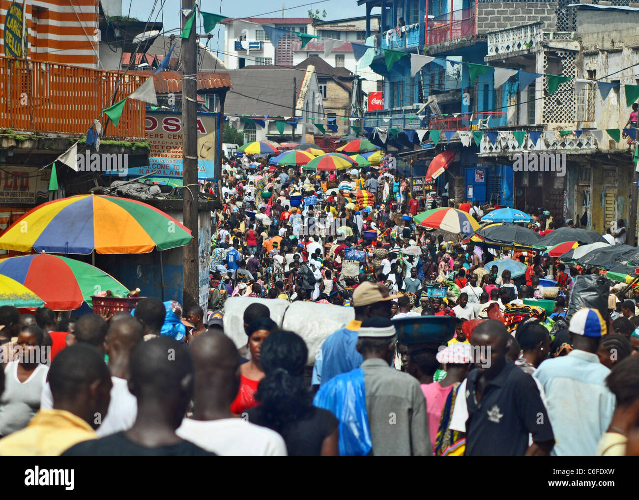 Bustling market street (Sani Abacha st.) in central Freetown, Sierra