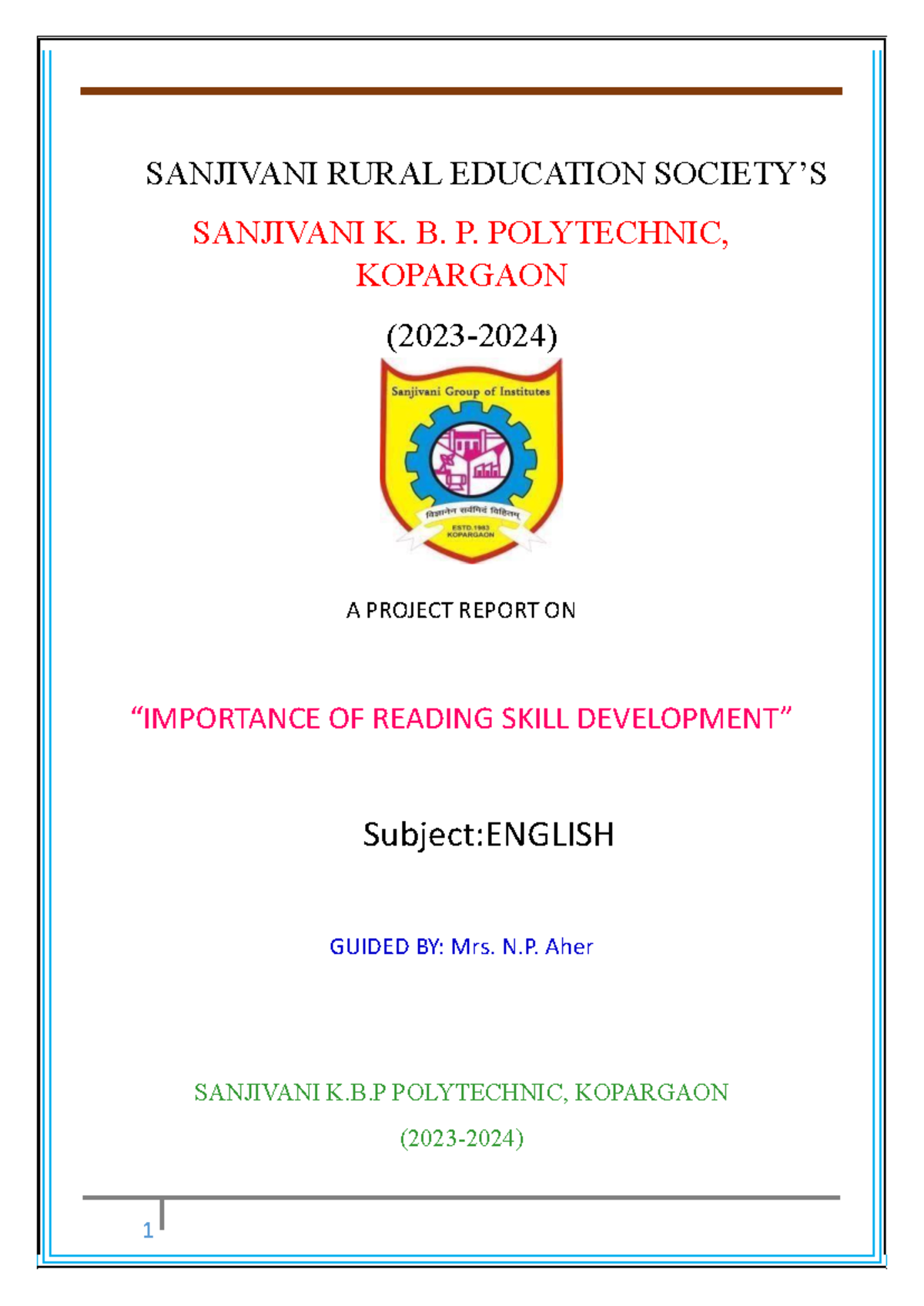 English Micro Project 12 - SANJIVANI RURAL EDUCATION SOCIETY’S