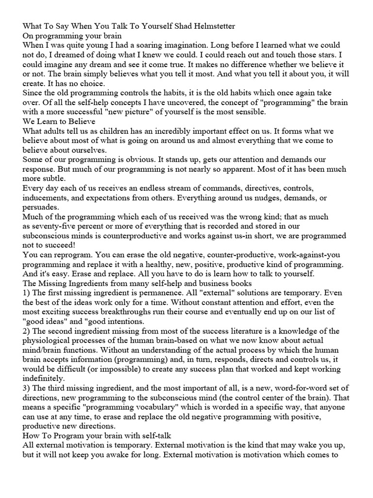 What To Say When You Talk To Yourself by Shad Helmstetter | PDF