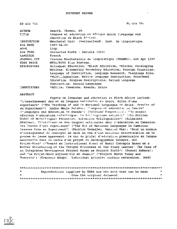 (PDF) Langues et education en Afrique noire (Language and Education in