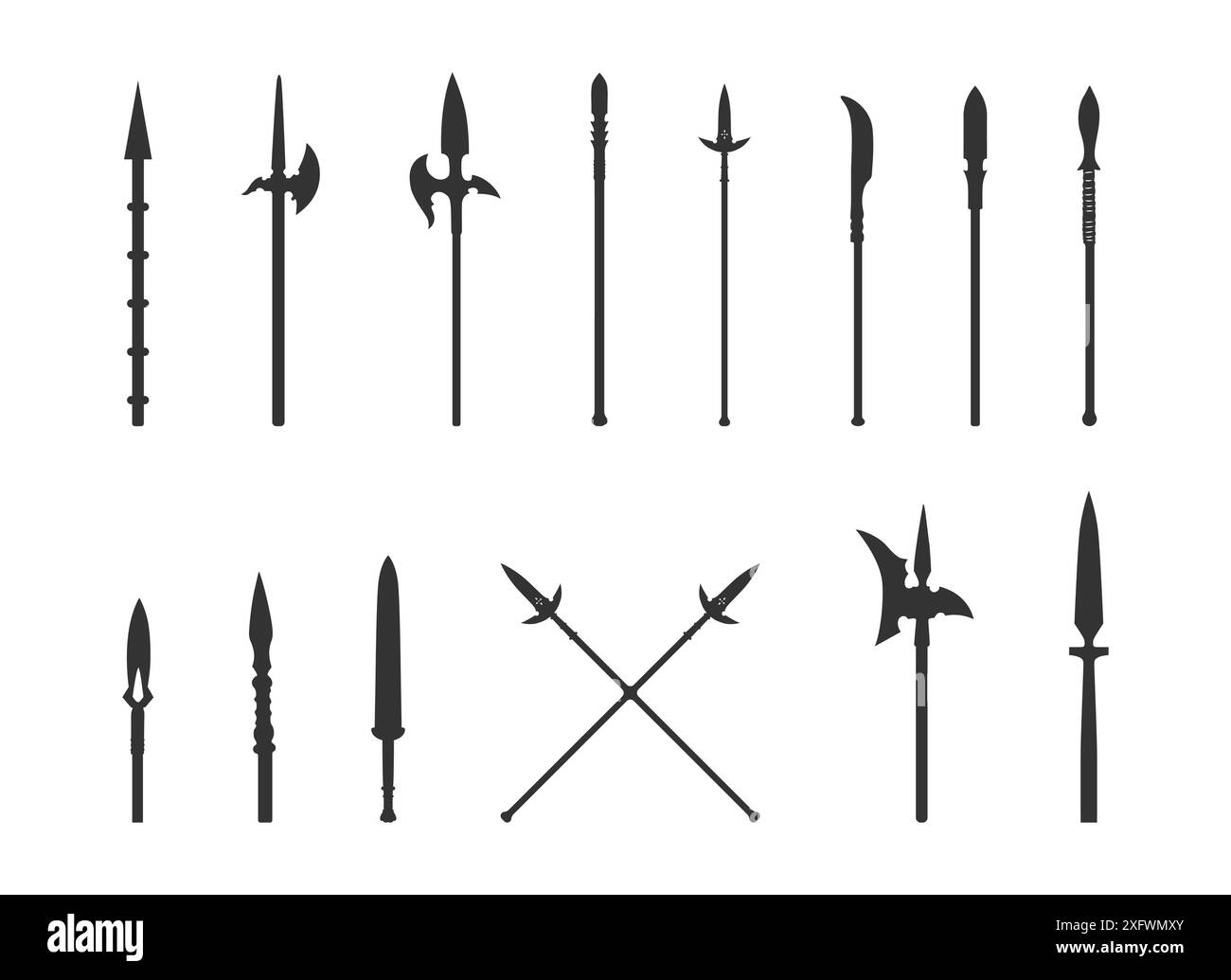 Spear silhouettes, Ancient spear silhouette, Spear vector illustration