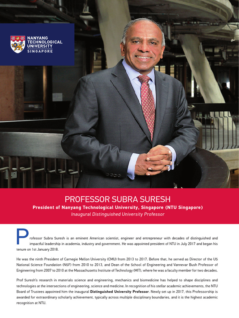 Full Biography of Prof Subra Suresh NTU President | PDF | Academia