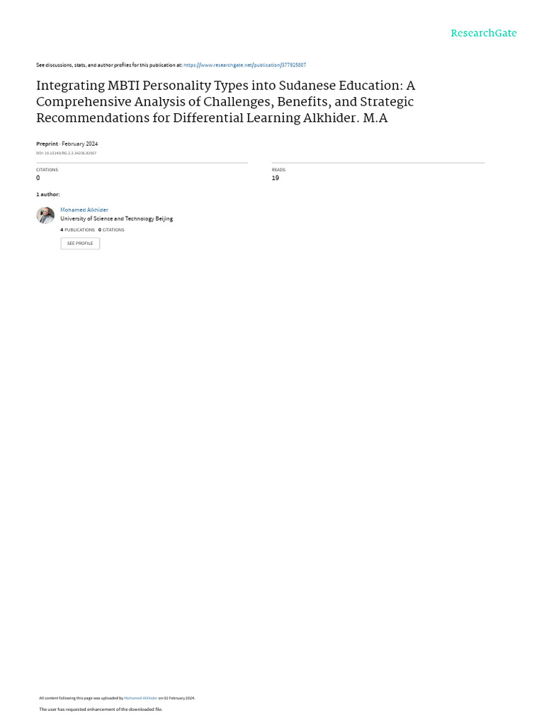 Integrating MBTI Personality Types Into Sudanese Education - A
