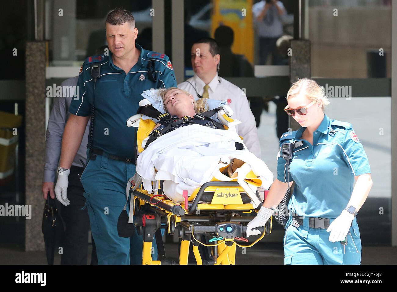 Paramedics take Julie Connor, mother of Beau Connor, on a stretcher