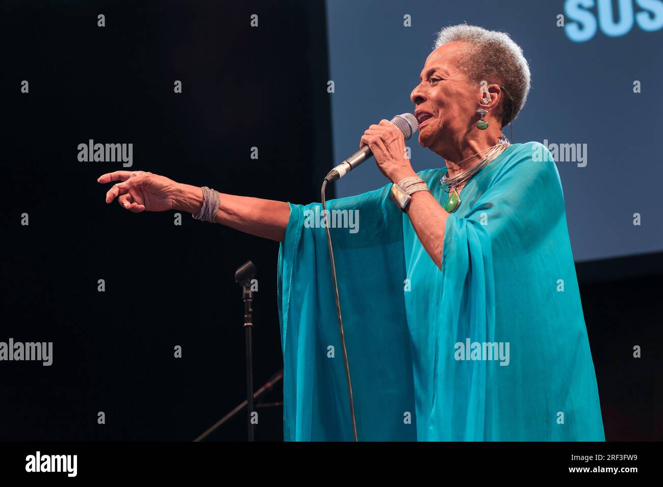 Peruvian Susana Baca performing in the Siam tent at Womad, Charlton