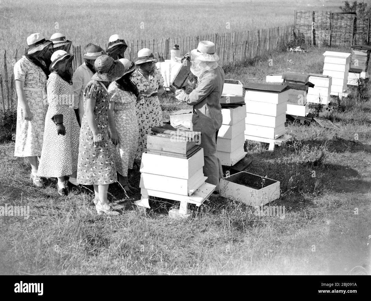 Swanley College girls at bee education. - 1934 Stock Photo - Alamy