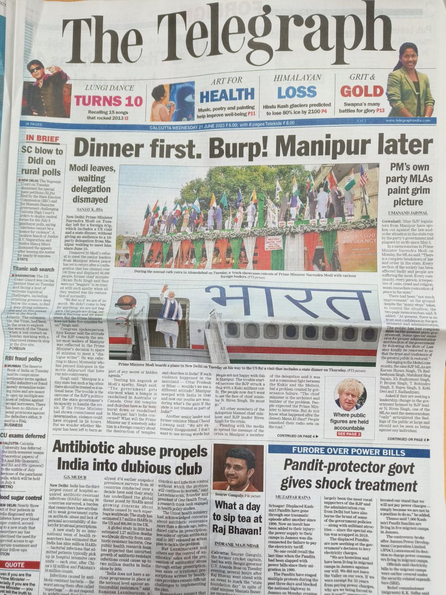 The Telegraph's front page : r/india
