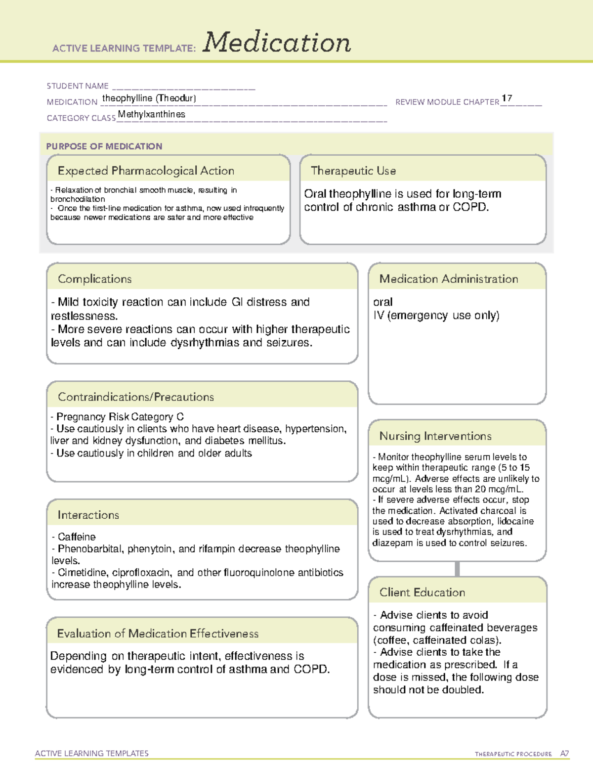 Theophylline - ACTIVE LEARNING TEMPLATES Medication STUDENT NAME - Studocu