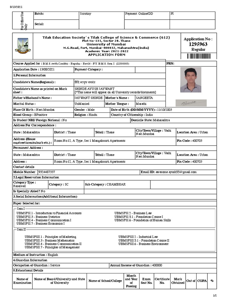 Tilak Education Society's Tilak College of Science & Commerce (612