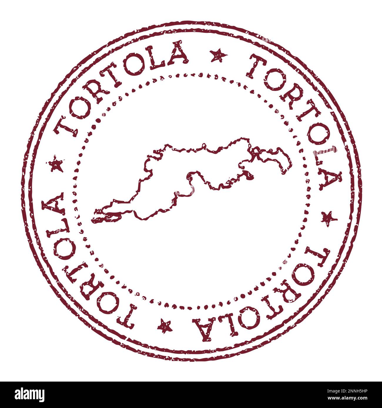 Tortola round rubber stamp with island map. Vintage red passport stamp
