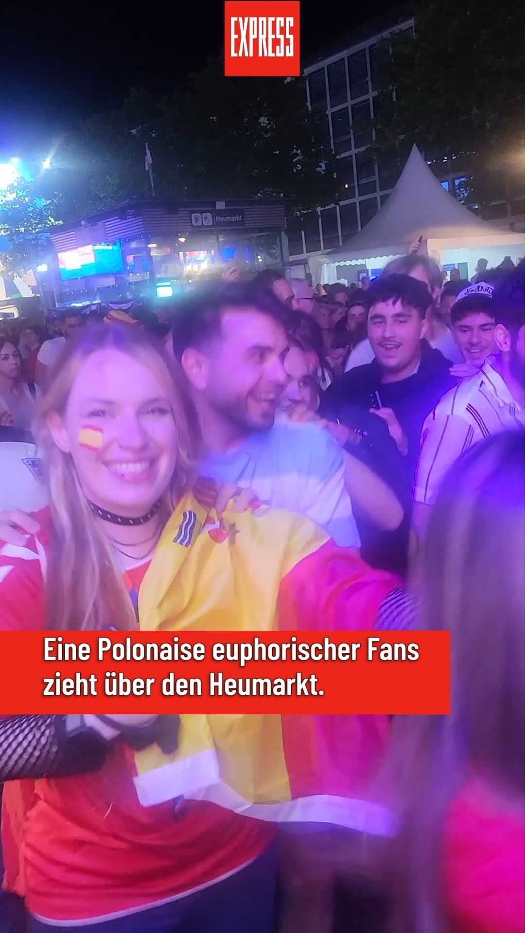 Polonaise auf dem Heumarkt: Spanische Fans feiern in Köln