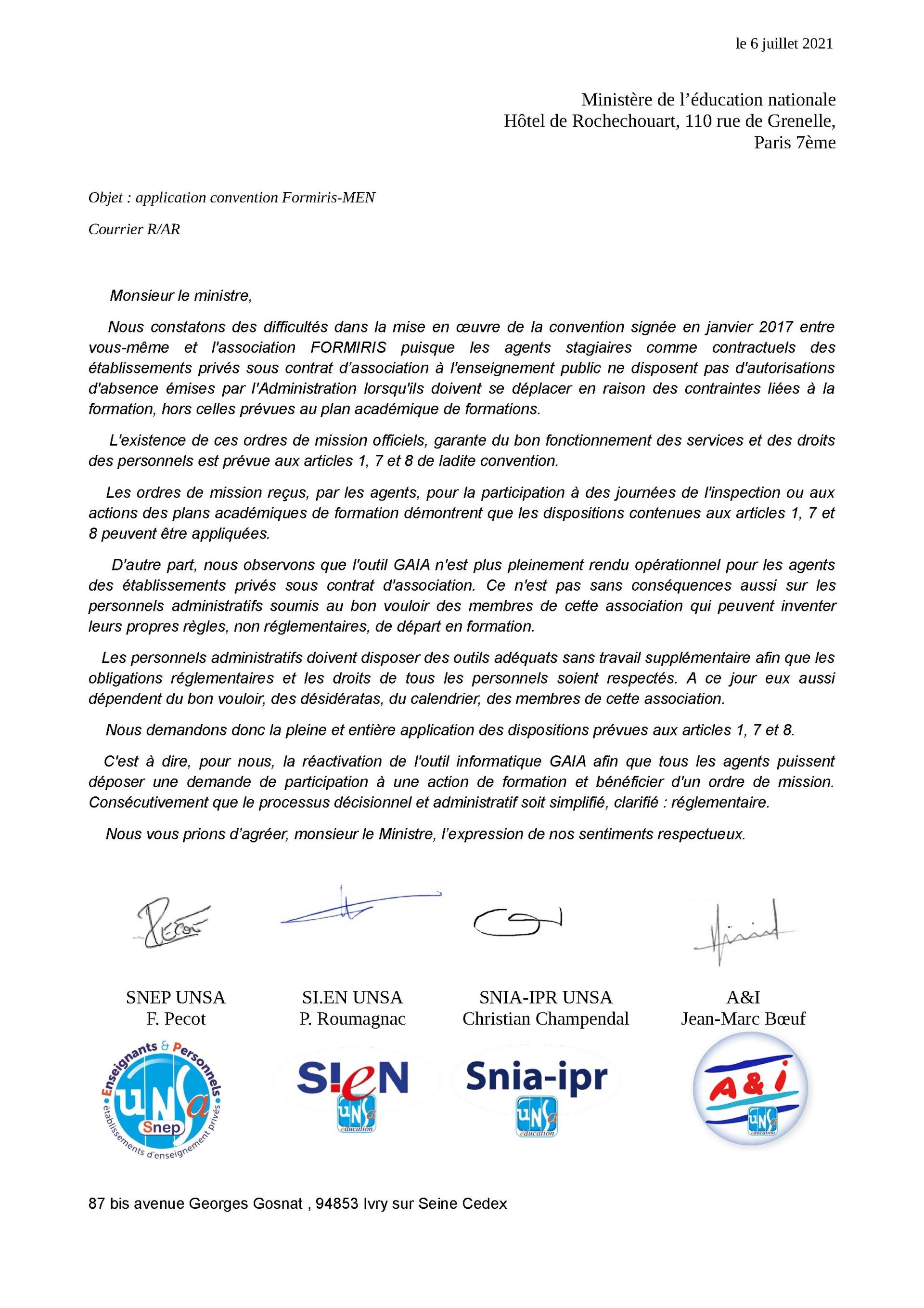 (formiris) courrier commun au Ministère de l'Education nationale