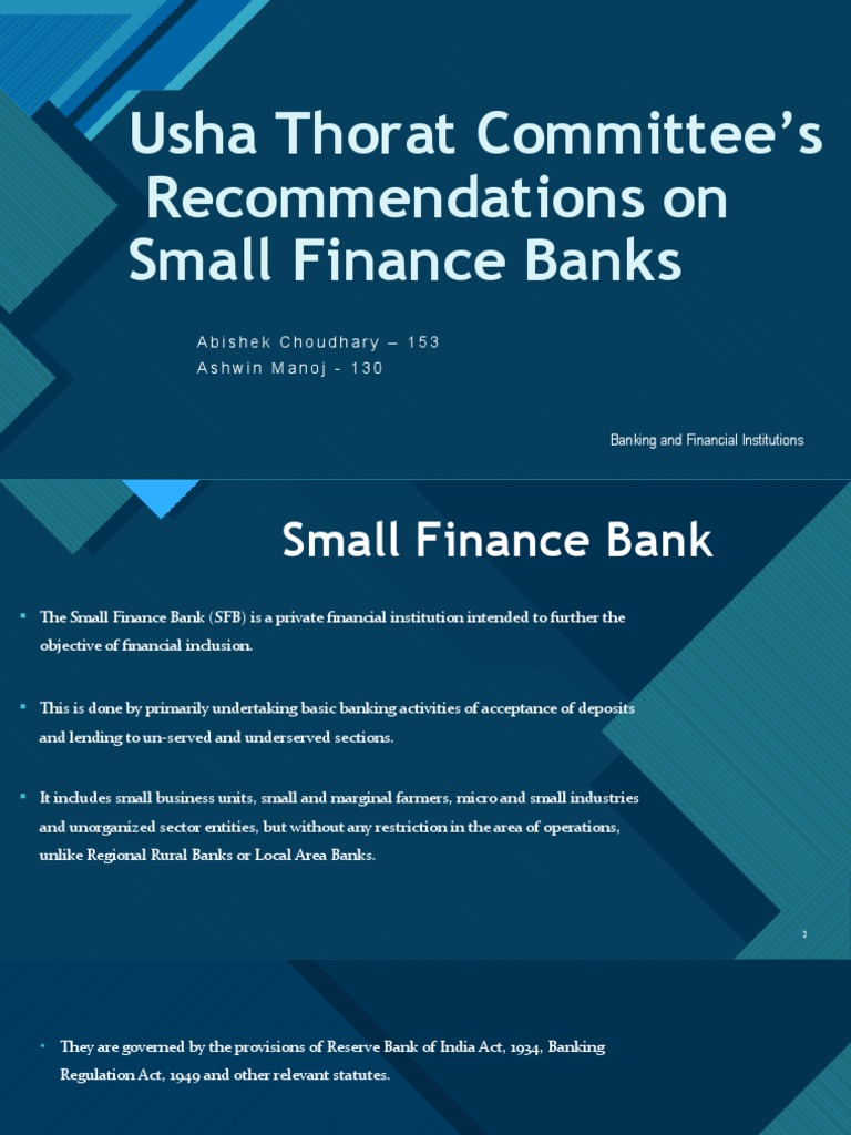 Usha Thorat Committee's Recommendations On Small Finance Banks | PDF