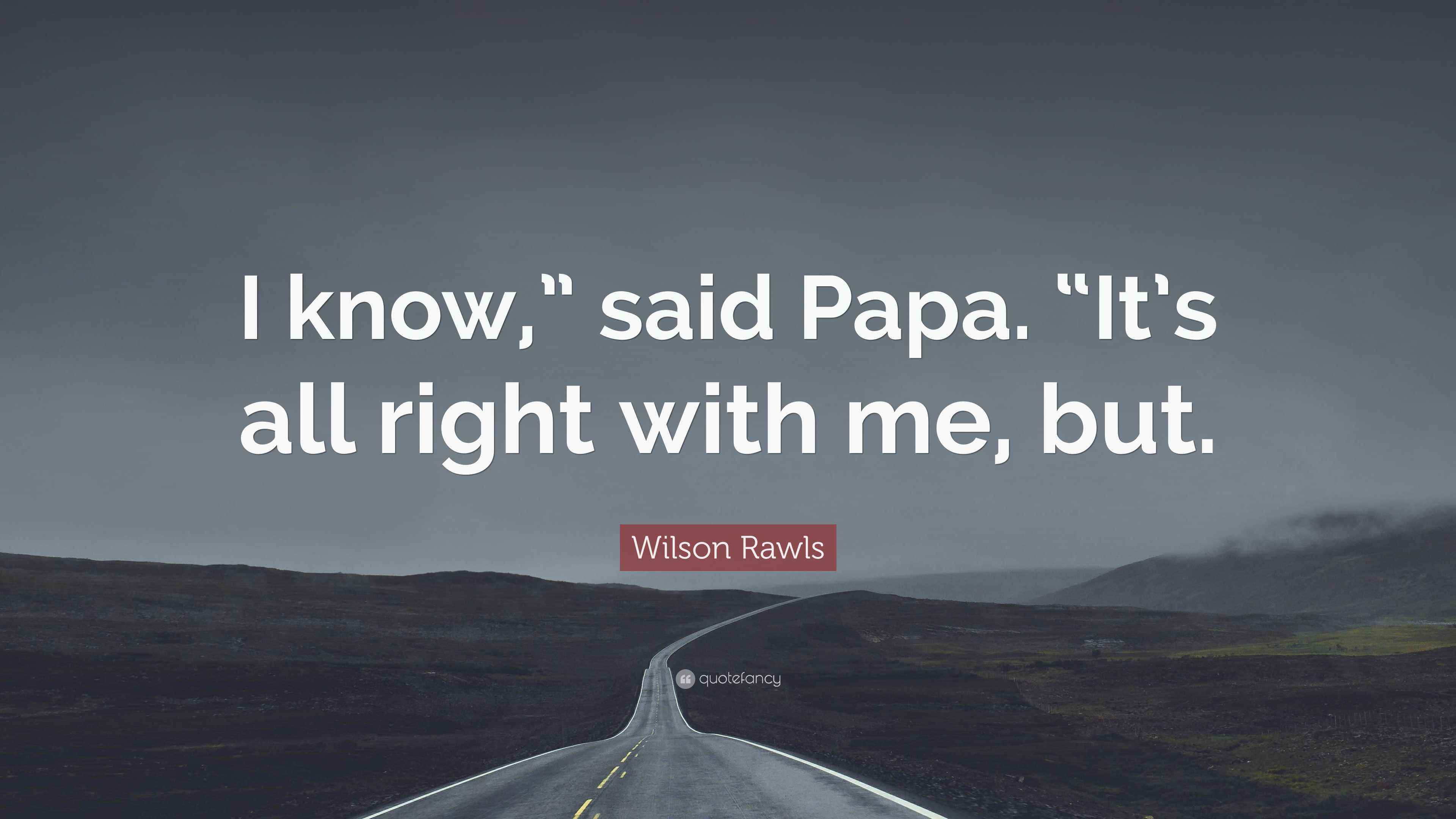 Wilson Rawls Quote: “I know,” said Papa. “It’s all right with me, but.”