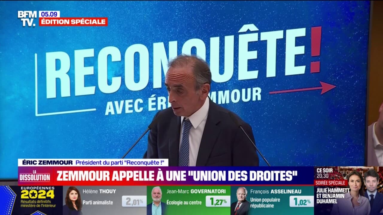 Dissolution de l'Assemblée nationale: Éric Zemmour appelle à "la plus